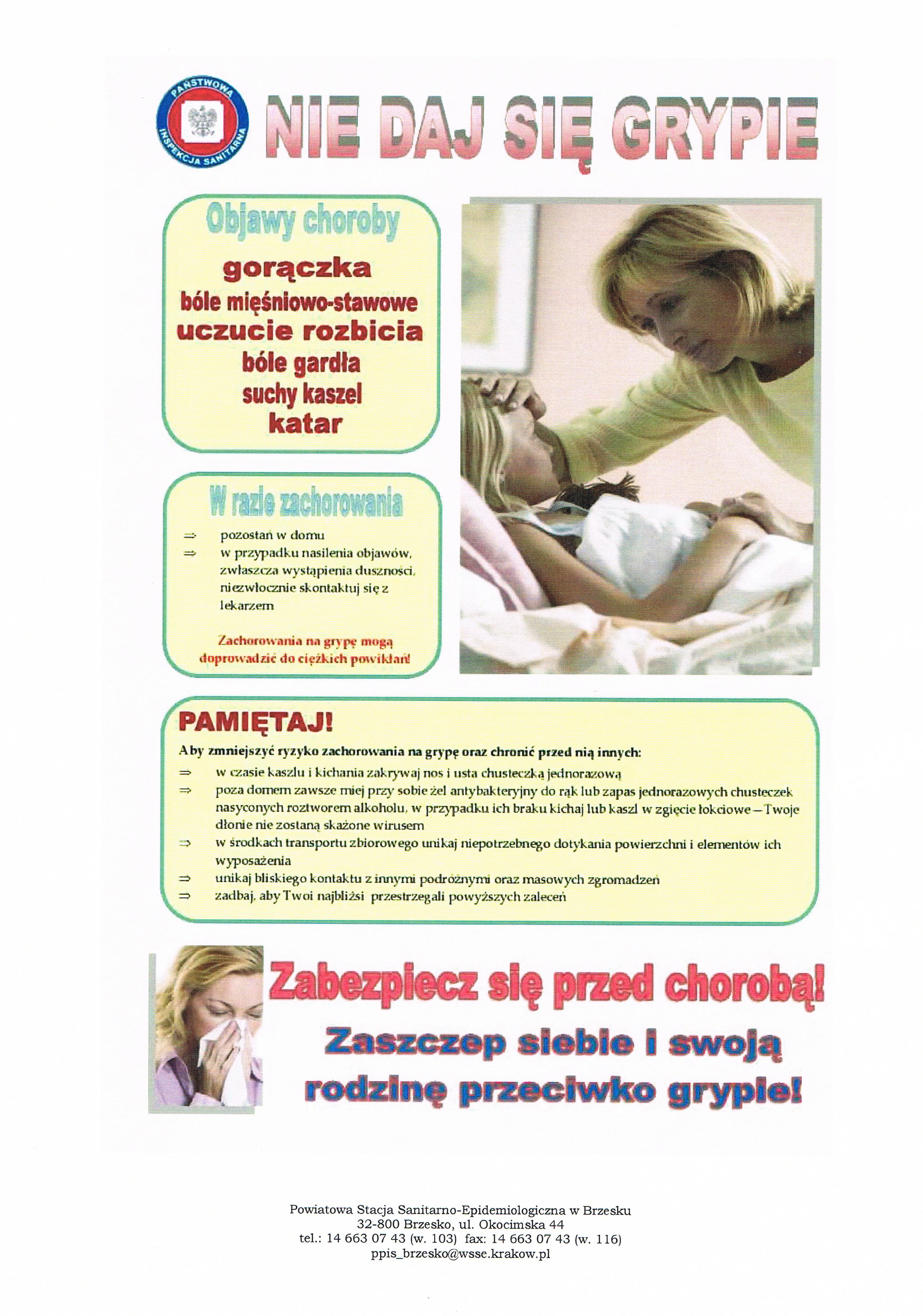 Osoby, u których występuje jeden lub więcej z objawów takich jak: gorączka, bóle głowy, bóle mięśni, ból gardła, katar, dreszcze, poczucie ogólnego rozbicia - mogą być chore na grypę. W celu zapobieżenia zachorowaniu i dalszemu szerzeniu się grypy sezonowej zaleca się: