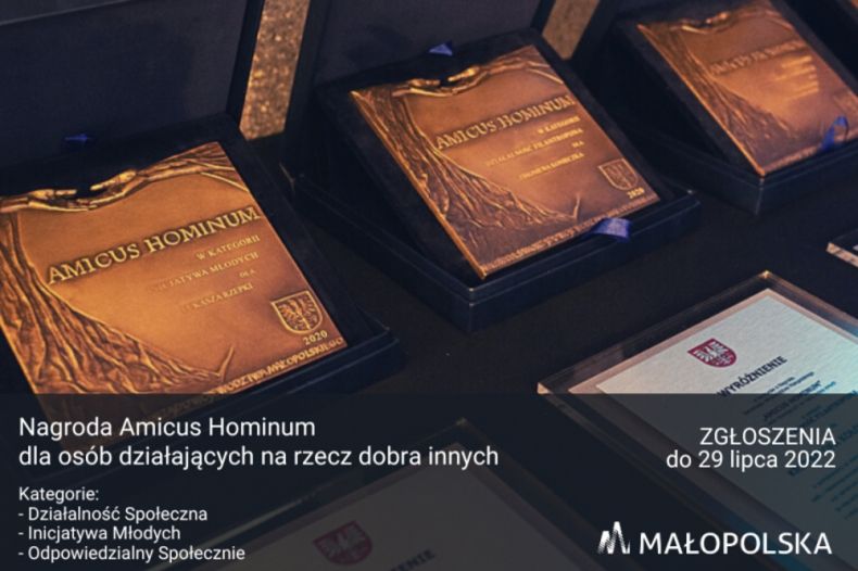 Chcąc docenić bezinteresowność i społeczne zaangażowanie Mieszkańców Małopolski wzorem lat ubiegłych, ogłoszony został konkurs o Nagrodę Samorządu Województwa Małopolskiego dla Osób Działających na Rzecz Dobra Innych „Amicus Hominum”. Celem tej Nagrody jest wyróżnienie osób prywatnych i nieformalnych grup, których bezinteresowna aktywność, praca i zaangażowanie oraz inwencja i oddanie na rzecz drugiego człowieka, przyczyniają się do propagowania postaw wzajemnej pomocy i wsparcia na rzecz potrzebujących.