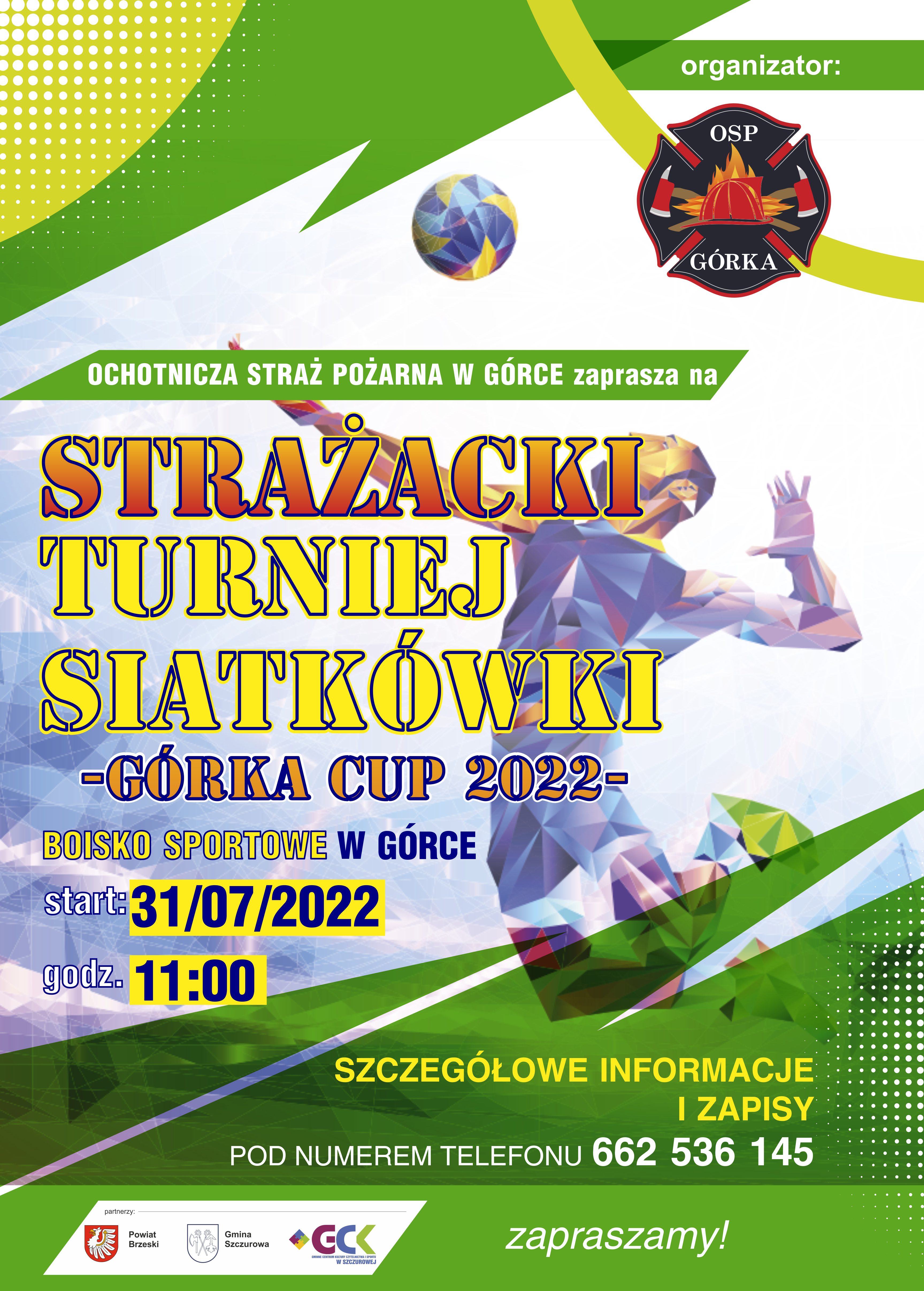 Ochotnicza Straż Pożarna w Górce zaprasza do udziału w Strażackim Turnieju Piłki Siatkowej Górka Cup 2022, który odbędzie się 31 lipca 2022 roku w Górce.
