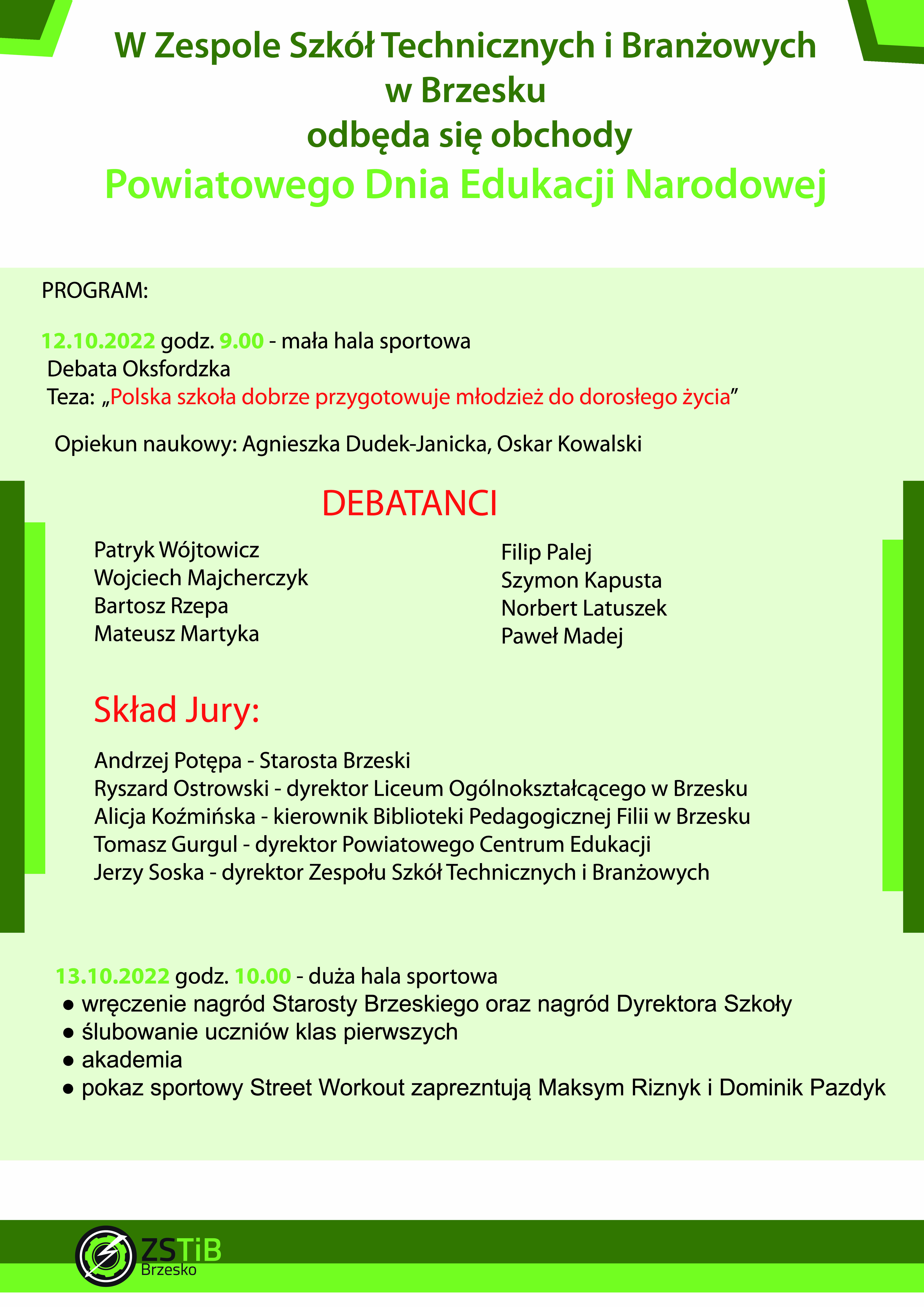 Ten tydzień będzie wyjątkowy dla Zespołu Szkół Technicznych i Branżowych w Brzesku, gdyż odbędą się w nim Powiatowe obchody Dnia Edukacji Narodowej.