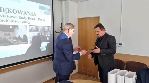 W trakcie spotkania Starosta Brzeski Andrzej Potępa podziękował członkom Powiatowej Rady Rynku Pracy działającej w latach 2019 - 2023 za aktywną współpracę i podejmowanie działań na rzecz poprawy sytuacji na rynku pracy.