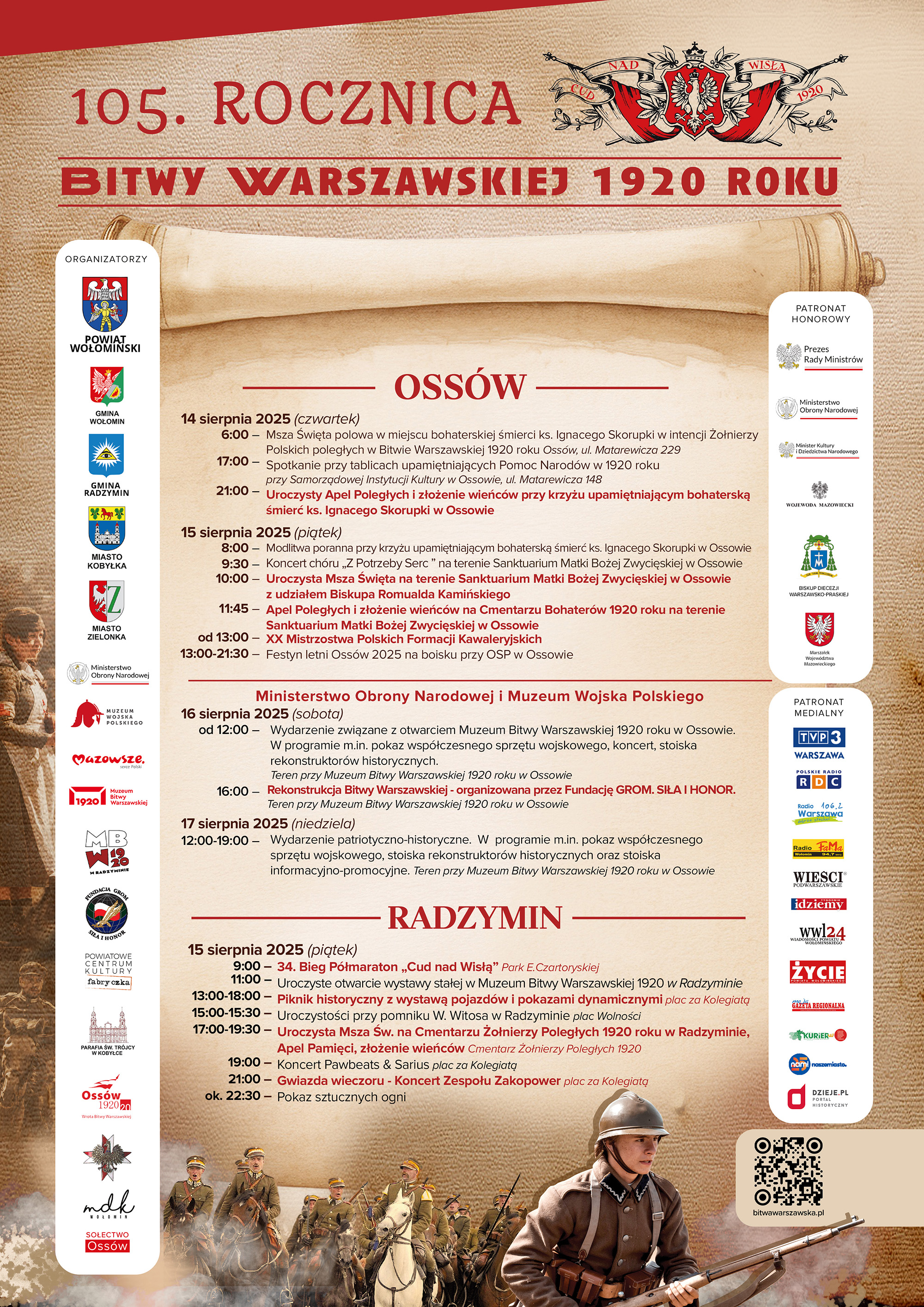 W dniach 14–17 sierpnia zapraszamy do Ossowa i Radzymina. Program obchodów przedstawia się następująco: