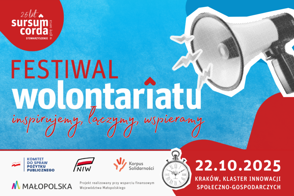 Już 22 października 2025 r. w Krakowie odbędzie się wyjątkowe wydarzenie – Festiwal Wolontariatu. To prawdziwe święto wszystkich, którzy wierzą w moc pomagania i chcą odkrywać, jak wielką siłę ma wspólne działanie.