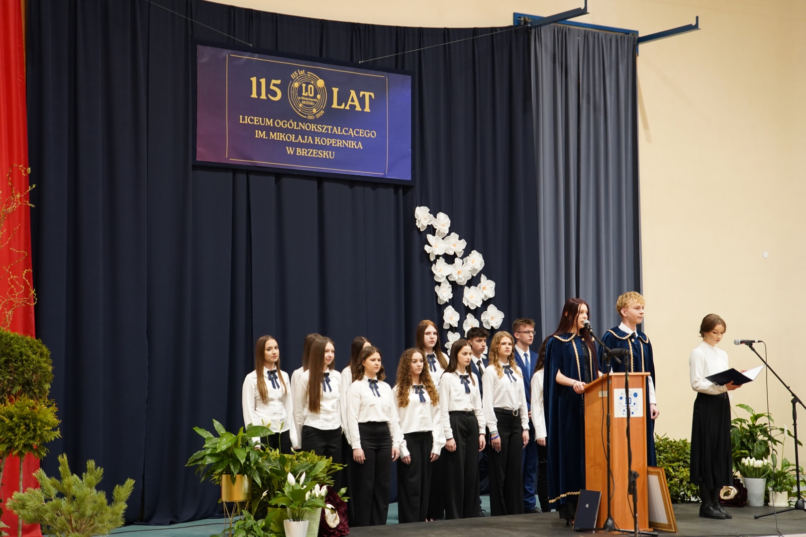 Podczas uroczystości można było zobaczyć wystawę szkolnych kronik, dawnych arkuszy i archiwalnych fotografii. Młodzież i nauczyciele przygotowali program artystyczny zbudowany z piosenek, poezji i wspomnień. W tekstach wyraźnie pobrzmiewała pasja dyrektora Ryszarda Ostrowskiego do literatury. Ale też głos młodego pokolenia, reprezentowanego przez uczniów tworzących własną poezję. Nie zabrakło odniesień do współczesności. Na ekranie wróciły obrazy pandemii i pierwszych dni wojny w Ukrainie, a obok nich pojawiła się symboliczna „sztafeta pokoleń”, rozmowa nauczyciela z wieloletnim stażem z synem - uczniem. Wspomnienia dopełniały zarejestrowane wypowiedzi absolwentów, w tym Andrzeja Żurka z zespołu Pod Budą, oraz lekki, momentami żartobliwy program choreograficzny, wykorzystujący przeboje minionych dekad. Całość ułożyła się w spójną opowieść, nostalgiczną i bardzo aktualną.- Świetnie łączycie tradycję i podążanie za nowoczesnością – podkreślił wicekurator małopolski Artur Pasek.